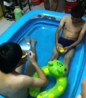 對(duì)于沒(méi)有空調(diào)的宿舍,夏天是最難熬的??磥?lái)為了避暑,童鞋們想盡了各種奇葩招數(shù)??!宿舍居然還有泳池?。『芮鍥霭。?!有木有?。?!