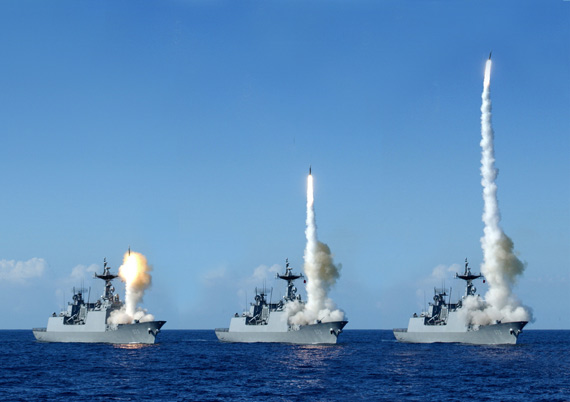 資料圖片:韓國海軍KDX-II級戰(zhàn)艦發(fā)射防空導彈。