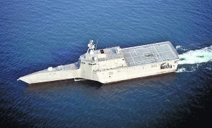 從軍事角度上來(lái)說(shuō),獨(dú)立級(jí)是第一種以實(shí)戰(zhàn)為目的三體艦艇。三體艦的設(shè)計(jì)可以在較小排水量的條件下,帶來(lái)更大的甲板面積,這對(duì)瀕海戰(zhàn)斗艦有著獨(dú)特的意義。因?yàn)槊绹?guó)海軍要求這種新型艦艇不但可以在近海進(jìn)行海戰(zhàn),還要具備相當(dāng)?shù)倪\(yùn)輸能力,能夠有同時(shí)操作兩架直升機(jī)的大型甲板。