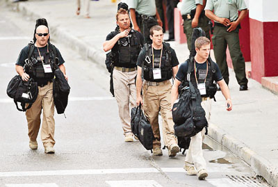 美國(guó)特工在美洲峰會(huì)會(huì)場(chǎng)外巡視。