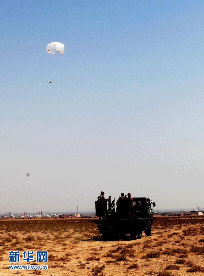 某型測繪無人機(jī)返回地面時(shí),自動(dòng)打開降落傘,空降到指定地域(4月16日攝)。新華社發(fā)(黃寶峰 攝)