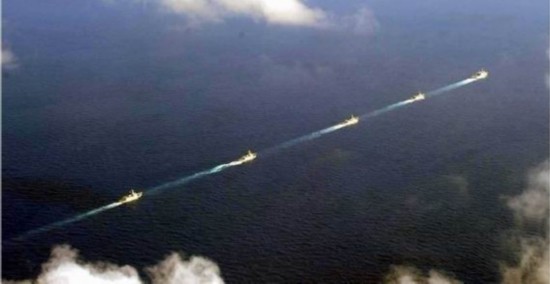 圖為中國昆侖山艦隊一字縱隊開往黃巖島海域
