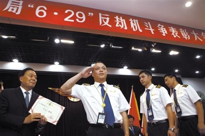 昨日下午,民航局在北京舉行“6·29”反劫機斗爭表彰大會,授予海航集團旗下天津航空公司GS7554航班機組“中國民航反劫機英雄機組”榮譽稱號,獎勵人民幣100萬元。民航局同時還對參與“6·29”反劫機斗爭的23名乘客表示慰問和感謝,并給予獎勵。