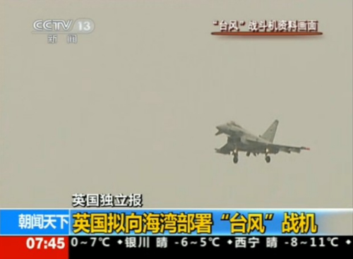 據(jù)英國《獨立報》11月2日消息,隨著與伊朗在其核項目上對峙持續(xù)、地區(qū)局勢緊張之際,英國擬考慮向海灣部署歐洲“臺風(fēng)”戰(zhàn)斗機(jī)。但報道指出,這一部署需要在同阿聯(lián)酋商議、并取得其對英國出現(xiàn)在地區(qū)的支持之后才能決定。