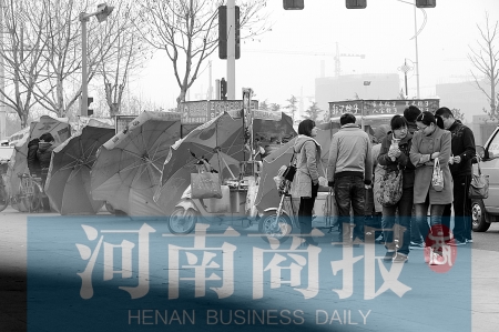 為遮擋大風(fēng),路邊小吃攤的大傘都迎風(fēng)放著。河南商報記者 鄧萬里/攝
