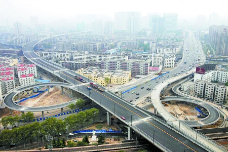 昨天上午,京沙快速通道工程工程監(jiān)理王柳洋,帶記者體驗了該路高架橋路段。由京沙快速通道與中原路交叉口北上,路中央已畫有兩條黃線。行至解放路高架橋頂端,可見從該路分出的匝道,形成兩條線路一南一北并入京沙快速通道。向北駛?cè)?strong>金水路、北三環(huán),向南駛?cè)胫性?、南三環(huán),“兩條高架橋的連接,能最大限度地緩解二七廣場區(qū)域及未來火車站西出站口的交通壓力?!蓖趿蠓Q,在京沙快速通道一期工程中,跨解放路高架橋、隴海鐵路、金水路系最為復(fù)雜的工程。