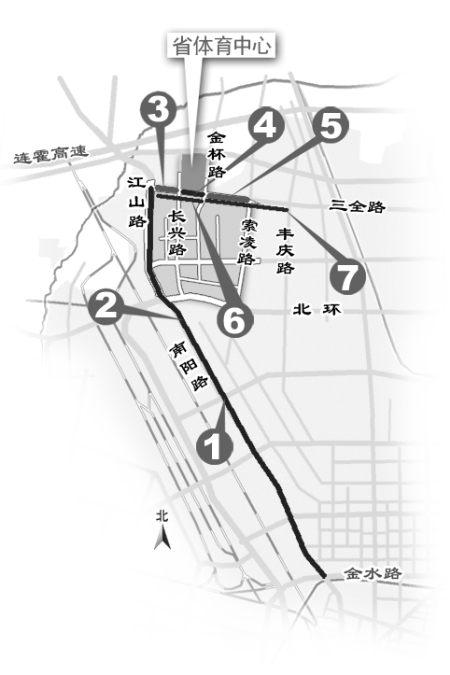 22:00至23:00,江山路(三全路至北環(huán)立交路段)、南陽路(北環(huán)立交至金水路段)只允許機動車由北向南行駛,禁止一切機動車(公交車除外)由南向北行駛。