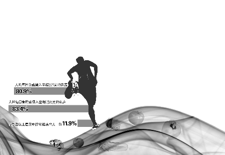 據(jù)2010年的中國慢病行為危險因素監(jiān)測的數(shù)據(jù)顯示,80.9%的家庭人均每日食鹽攝入量超過5克;83.4%的家庭人均每日食用油攝入量超過25克。我國居民經(jīng)常鍛煉的比例,18歲及以上居民中僅11.9%的人經(jīng)常鍛煉。