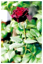 月季 小葉少,3~5片,但小葉較大,長(zhǎng)2.5~6.0厘米。葉面較平,不凹陷,無(wú)皺紋。枝直立 ,刺少, 新枝的枝端都有花。