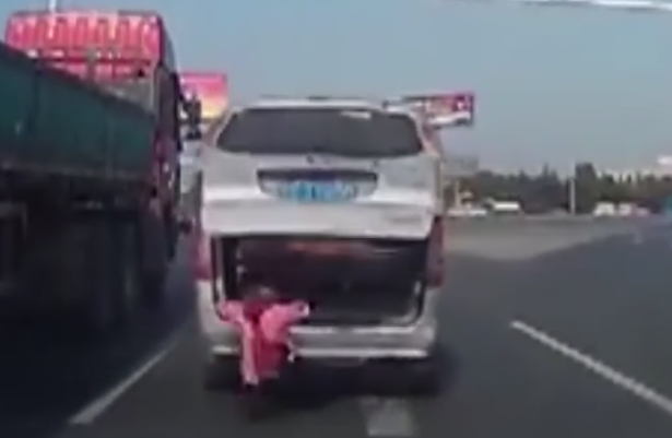 可怕!實(shí)拍孩子從車上掉出