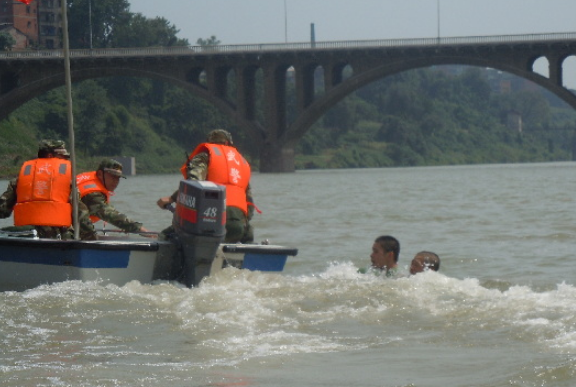實(shí)拍武警救援時被洪水沖走