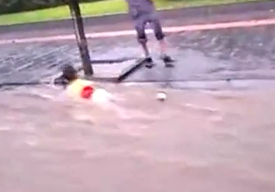 安陽(yáng)暴雨:女孩倒地被沖著走