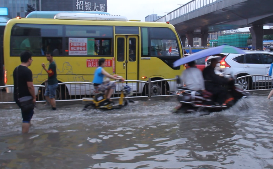 安陽(yáng)暴雨:女孩倒地被沖著走
