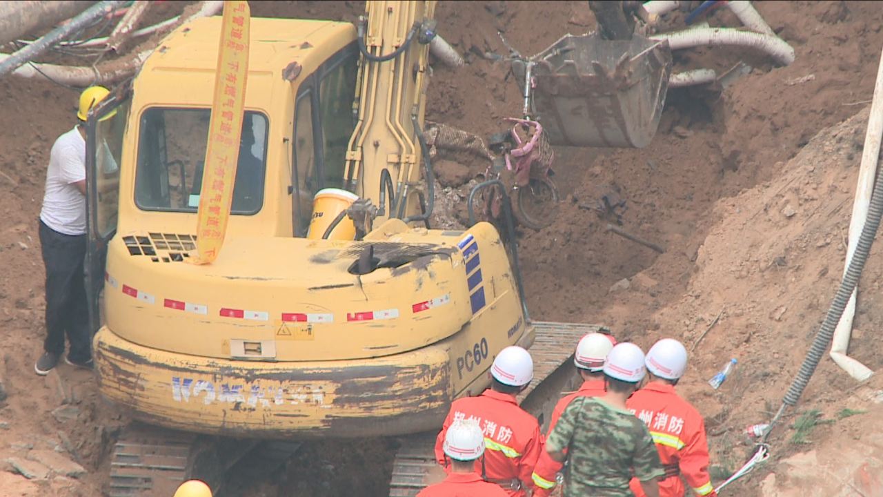 中原路塌方現(xiàn)場(chǎng)再現(xiàn)險(xiǎn)情 現(xiàn)場(chǎng)挖出電動(dòng)車(chē)