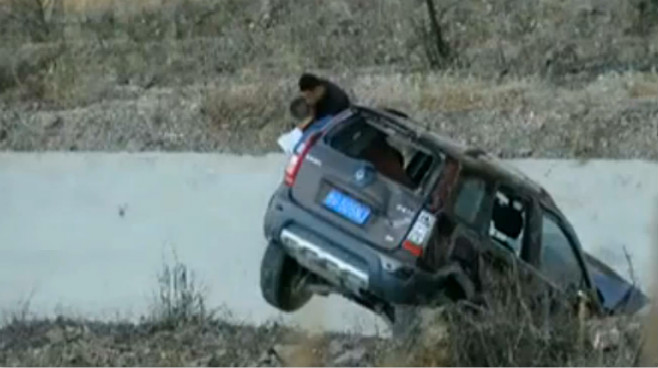 實拍:轎車剎不住飛落懸崖