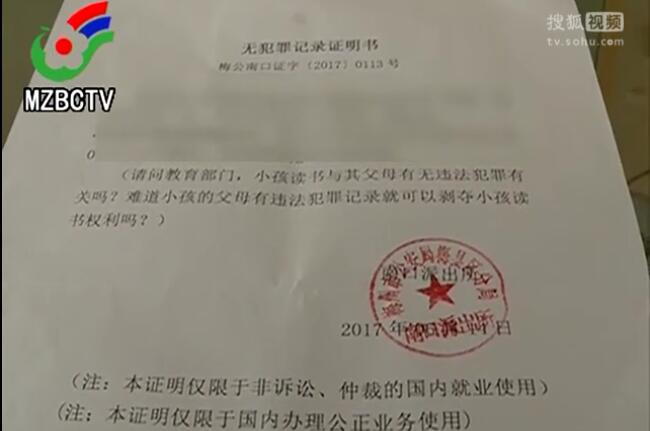 小孩入學(xué)需家長(zhǎng)無罪證明 派出所霸氣懟回
