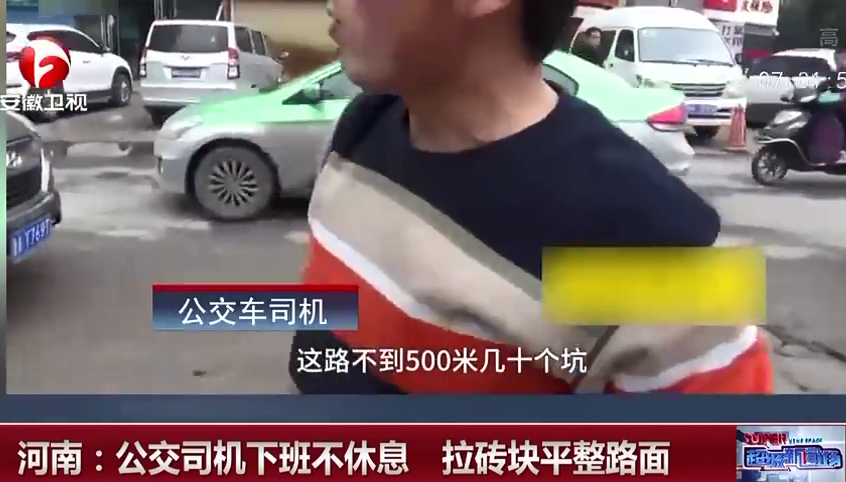 公交司機(jī)下班拉磚塊平整路面