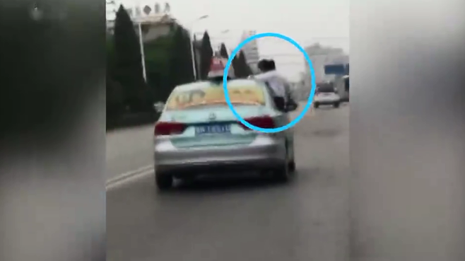停運(yùn)的哥稱后怕,教育趴車頂寫作業(yè)女兒