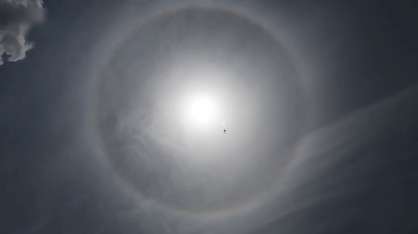 飛機(jī)“橫穿”巨大日暈被抓拍