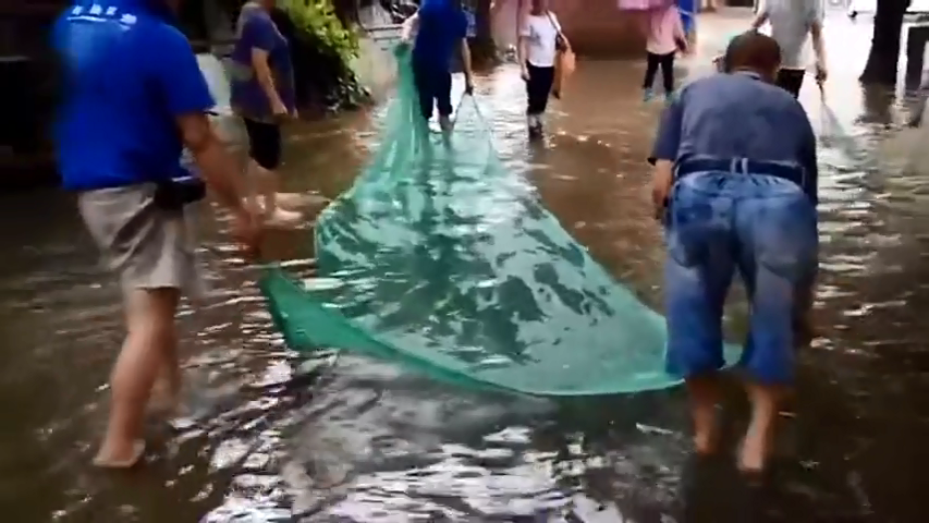 臺風(fēng)過境佛山 市民上街撈魚