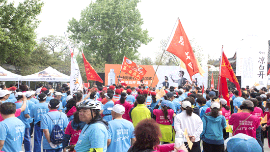 簡短的啟動(dòng)儀式和熱身活動(dòng)后,一聲發(fā)令槍響起,只見開封府的“包大人”和主持人孟湛一起帶領(lǐng)來自各行各業(yè)的數(shù)千名運(yùn)動(dòng)愛好者齊步出行,由此也揭開了名嘴孟湛之前“黑幕”的謎底。