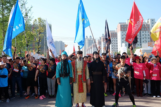 許昌站的現(xiàn)場突然降臨了幾位不速之客---三國英雄劉備、關(guān)羽、張飛,這桃園結(jié)義的三兄弟齊齊穿越來到現(xiàn)場?定睛一看,他們竟然一改昔日三國的剽悍形象,活力四射跟著主題曲《健康走起來》手舞足蹈,哈哈!看來這主題曲的旋律還真是似神曲般具有蜜汁魔性呀!
