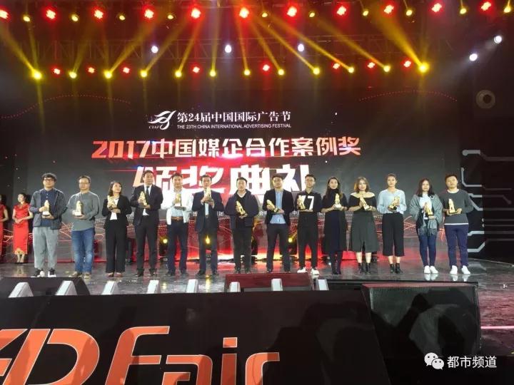在2017中國(guó)廣告長(zhǎng)城獎(jiǎng)·廣告主獎(jiǎng)之媒企合作案例獎(jiǎng)?lì)C獎(jiǎng)現(xiàn)場(chǎng),河南都市頻道榮獲6項(xiàng)營(yíng)銷(xiāo)大獎(jiǎng)。都市頻道團(tuán)隊(duì)?wèi){借廣告與節(jié)目的融合、專(zhuān)業(yè)的服務(wù)水準(zhǔn)、勇于創(chuàng)新?tīng)I(yíng)銷(xiāo)策劃能力,獲得“中國(guó)長(zhǎng)城獎(jiǎng)2017年度金伙伴獎(jiǎng)”。