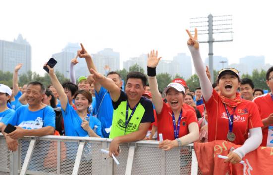 跑者和獎(jiǎng)牌獎(jiǎng)品合影