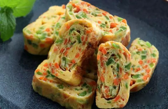 這款韓式蔬菜雞蛋卷,在蛋液中添加了胡蘿卜和甜椒,沖淡了雞蛋原有的味道,使得整款雞蛋卷口感變得清新且富有營養(yǎng),尤其適合于不愛吃雞蛋,偏食的孩子以及消化不好的年長者,是款各年齡段都喜愛的家常料理。