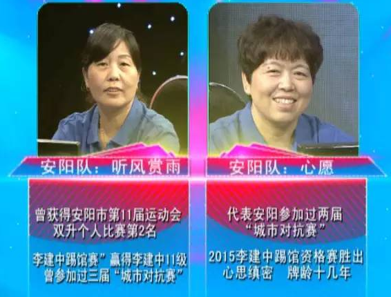 雖然來的是兩名女隊員,但是人家巾幗不讓須眉。“聽風(fēng)賞雨”曾獲得安陽市第11屆運動會雙升個人比賽第2名;2015年“李建中踢館賽”領(lǐng)先李建中11級;參加過三次“河南電視雙升城市對抗賽”?!靶脑浮痹?015年“李建中踢館資格賽”中勝出;代表安陽隊參加過兩屆“河南電視雙升城市對抗賽”,牌齡十幾年。