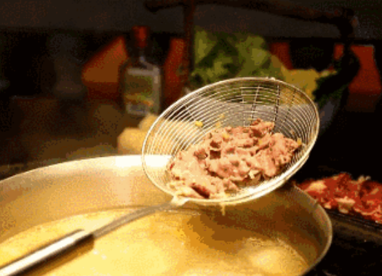 新鮮的牛肉精致的刀法,再配上純牛骨熬制的底湯,采用三上三下的涮肉方法,蘸上潮汕火鍋絕配的沙茶醬,任牛肉在舌尖上翩翩起舞,這滋味想不美都難啊。