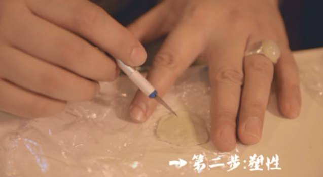 第一步需要先捏土,但全程不能用手直接觸碰,所有的銀質(zhì)黏土一點也不能浪費,可謂是真正的寸土寸金。今天做的是豌豆的造型,需要有三個豌豆,豌豆的制作相對簡單,想做出大牌兒一般的手作,全靠你左腦的想象和右腦的操作了。