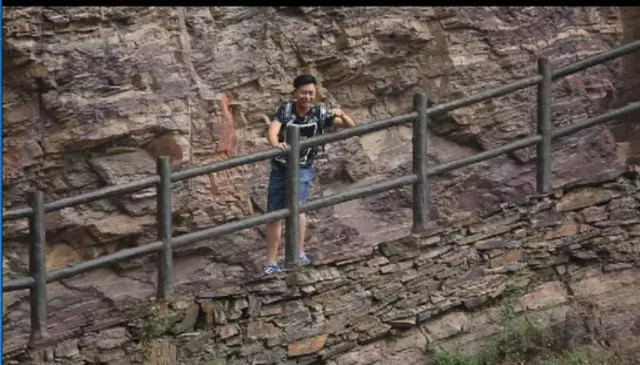 看到這棵樹了沒有,據(jù)說這個(gè)葉子有個(gè)奇特的味道,是一股橘子味,在這山上還有很多珍貴野生的樹種,漫山遍野一股清香襲來,再往前走就可以看到天井了,天井四面峭壁,犬牙交錯(cuò)高深莫測。