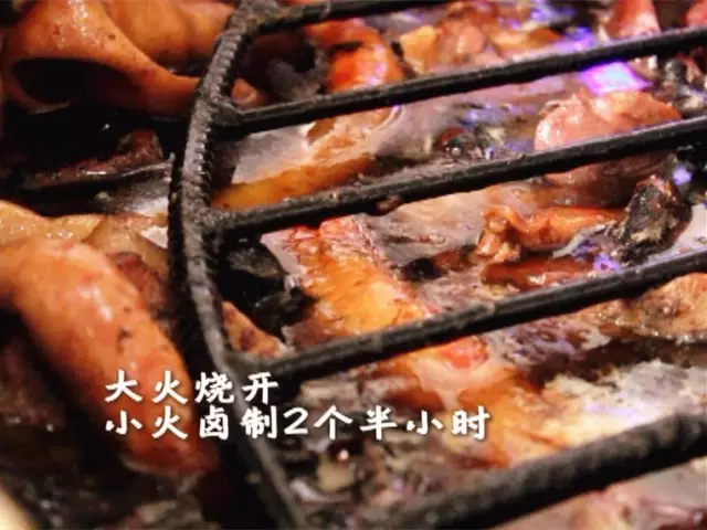還有啥大料?這可是個(gè)秘密,據(jù)說(shuō)這秘方可是他家獨(dú)有的,俗話說(shuō)細(xì)節(jié)決定成敗,鹵料下鍋也要充分注意小細(xì)節(jié),肉皮朝下才能保證煮透并入味,上面還要蓋上鐵篦子和長(zhǎng)石條,保證肉類能充分浸泡在老湯中。