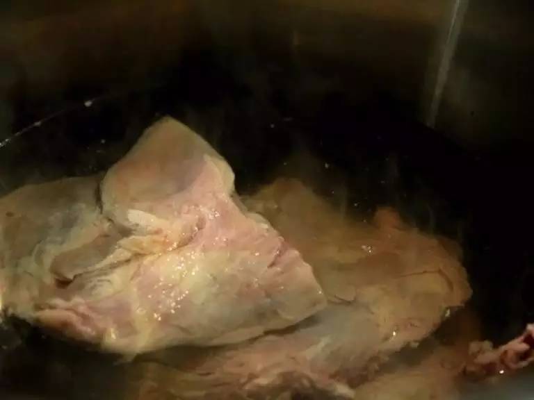 湯鍋中加入冷水,將骨頭下入鍋內(nèi),等水快燒開時(shí)撇去浮沫,再下入鹽、還有由八角、茴香等十多種大料組成的秘制料粉。