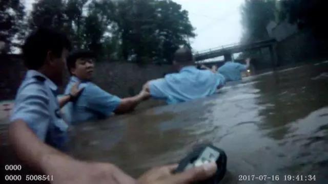 7月16日晚7點(diǎn),新密市突然下起了瓢潑大雨。7點(diǎn)30分,正在動物園附近執(zhí)行任務(wù)的新密市公安局西大街派出所民警呂鵬輝和輔警張靖、韓耀鵬、張文龍、張永康等接110指令:于家崗鐵路橋處有人被困在水中,請馬上前去解救。