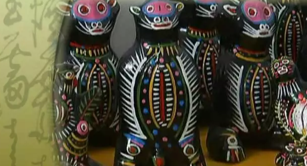 原來(lái)泥泥狗就是按照伏羲女?huà)z捏人的方法,用泥制造。傳說(shuō)伏羲是人頭狗身,“伏”字便是“人”與“犬”兩字合成,所以泥泥狗造型都是人頭獸身。多達(dá)兩百多種造型,唯一的共同點(diǎn)是,他么全部以黑為基調(diào),另用青、赤、白、黃繪制。泥泥狗為什么以黑色做底、五色點(diǎn)化呢?如此受歡迎的泥泥狗是如何制作的?他們的造型究竟是天馬行空還是有據(jù)可查呢?