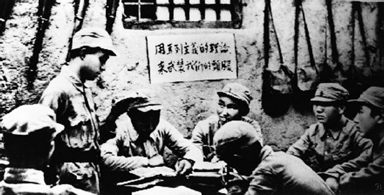 1942年,延安,戰(zhàn)士們在進行整風學習 本版圖片均來自中國共產(chǎn)黨新聞網(wǎng)