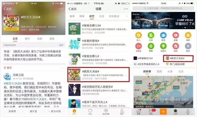 節(jié)目播出至今,“脫貧大決戰(zhàn)”早已在網(wǎng)絡(luò)社交平臺(tái)上引起了網(wǎng)友熱議。人民網(wǎng)、光明網(wǎng)、央視網(wǎng)、中國(guó)網(wǎng)、環(huán)球網(wǎng)、騰訊、新浪、網(wǎng)易、今日頭條、百度等數(shù)百家媒體進(jìn)行轉(zhuǎn)載,新浪微博、微信公眾號(hào)等大量自媒體號(hào)廣泛傳播。統(tǒng)計(jì)顯示,截至11月30日,《脫貧大決戰(zhàn)》在新浪微博話題綜合榜上排名第七,全國(guó)綜藝榜排名第二,新浪微博閱讀量達(dá)到了7990萬(wàn)。