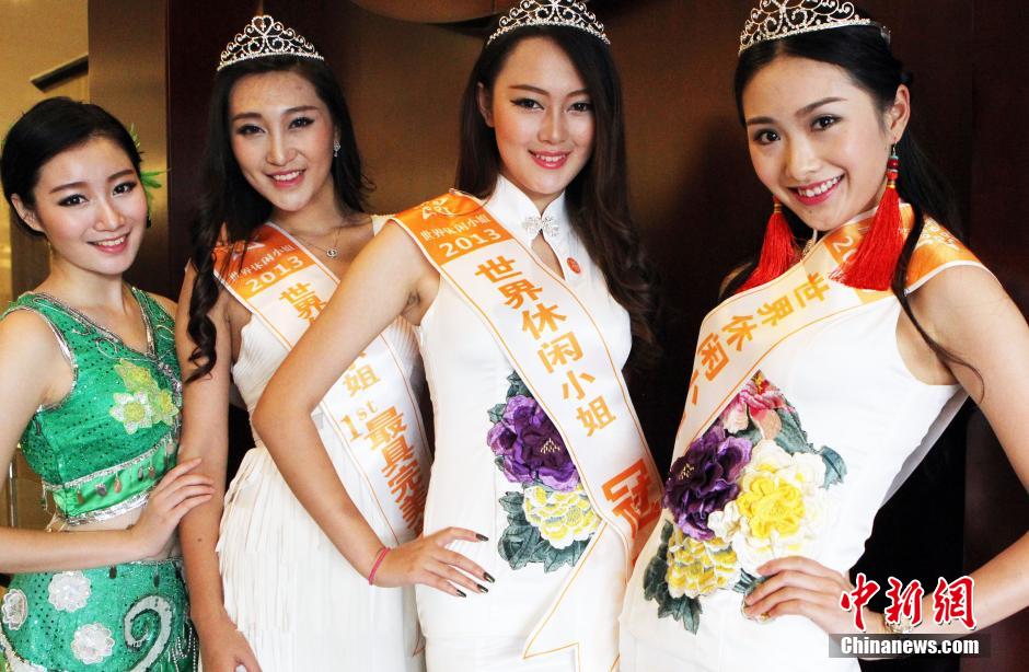 5月28日,第三屆中國(guó)(北京)國(guó)際服務(wù)貿(mào)易交易會(huì)在北京召開(kāi)。為促進(jìn)文化產(chǎn)業(yè)與投融資機(jī)構(gòu)的項(xiàng)目對(duì)接,中華文化投融資聯(lián)合會(huì)與世界休閑小姐大賽組織舉行戰(zhàn)略合作伙伴簽約儀式暨2014世界休閑小姐大賽啟動(dòng)儀式在京交會(huì)上舉行。圖為世界休閑小姐大賽獲獎(jiǎng)佳麗亮相京交會(huì)。中新社發(fā) 錢(qián)興強(qiáng) 攝