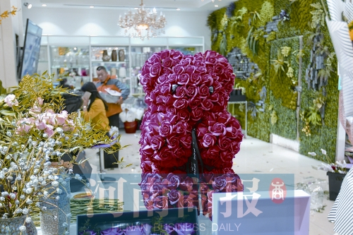 商戶陳玉稱,七夕的主角還是紅玫瑰?!叭ツ炅餍小П啊?,今年流行‘抱抱熊’?!鄙虘艉纹G威稱,“抱抱熊”是用紅玫瑰制作的,這種玫瑰不是鮮切花,而是皂花,幾乎和真玫瑰一樣,但比真花更耐放,只要不碰水,能放兩年左右。