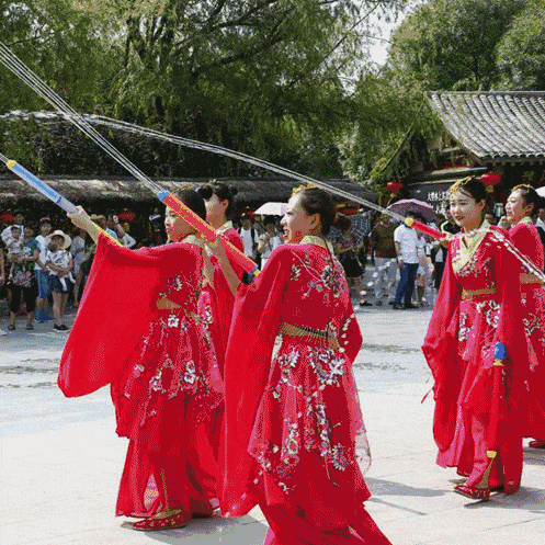 另外集聲、光、水、景為一體的水鼓表演和激情樂隊(duì)特色舞蹈,景區(qū)內(nèi)的水槍大戰(zhàn)和推鐵環(huán)、打陀螺、抖空竹、推獨(dú)輪車、挑柴擔(dān)等,都是夜游清明上河園不可或缺的體驗(yàn)項(xiàng)目。